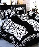KING Size MicroFiber (Micro Fur) Bed in a Bag 7 pc. Comforter Bedding Set - "White Tiger" Style