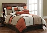 Palmer 7-Piece Comforter Set. Palmer 7-piece comforter set can be described in many ways but none are quite as accurate as elegant and dignified. Available in a large queen size, this bedding ensemble just seems to fill the room with sophistication, from the large and thick comforter and shams to the three attractive decorative pillows. Palmer 7-piece comforter set takes the drudgery out of shopping for bedding and turns it into the fun and e by citing event it was meant to be. This beautiful microsuede bedding collection includes an 86-inch by 86-inch comforter, a bedskirt, two shams and three decorative pillows - all the necessities you need for a stylish and functional bedroom. The decorative pillows - a square pillow, a breakfast pillow and a neck roll pillow - add a real sense of fun to your bedroom decor. Palmer 7-piece comforter set is a contemporary bedding collection available in five color options: black, blue, green, red or spice. The bold squares, framed in deep colors, add an unbelievable sense of style and grace to any bedroom. The Palmer collection's unique color mixture makes it very easy to decorate around when choosing floor coverings, wall coverings or even sheet sets. Palmer 7-piece comforter set is ideal for any gender or age in a way seldom found in bedding collections. The beautiful array of rich tones makes it eye-catching and adds a touch of excitement to any bedroom decor. Suddenly, your bedroom will become your favorite room in your home. You'll want nothing more than to show it off to all your guests - which make getting this set for your guest room such a great idea. 100-percent Polyester. Machine wash cold. Tumble dry low - remove promptly. Imported.